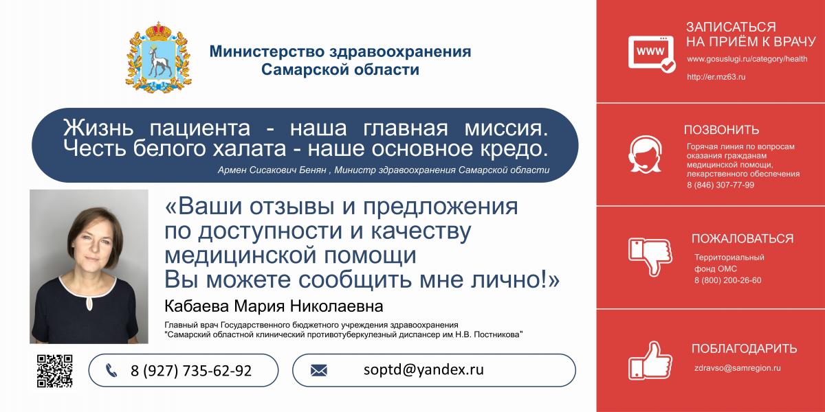 Главный врач ГБУЗ " Самарский областной клинический противотуберкулезный диспансер имени Н.В. Постникова - Кабаева Мария Николаевна